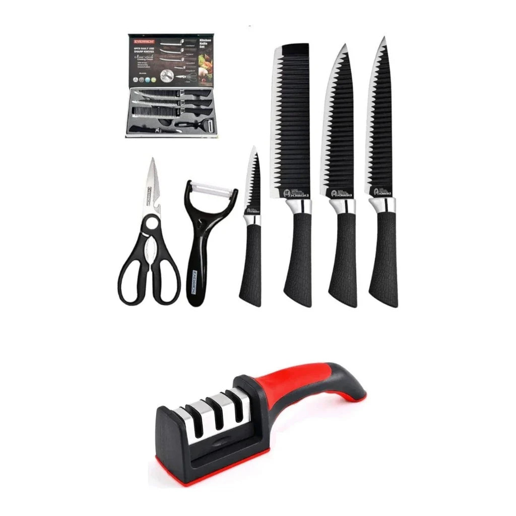 Kit Churrasco Conjunto de 08 Peças - Facas Gourmet com Corte Navalha Antiaderente