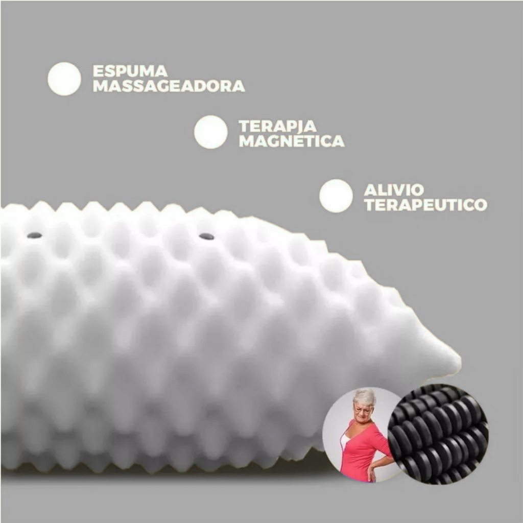 Equipado com pontos magnéticos estrategicamente posicionados, o travesseiro atua como um terapêutico aliado no relaxamento muscular e na melhora da circulação sanguínea. Ideal para quem busca alívio do estresse, tensão e cansaço acumulado após longos dias de trabalho