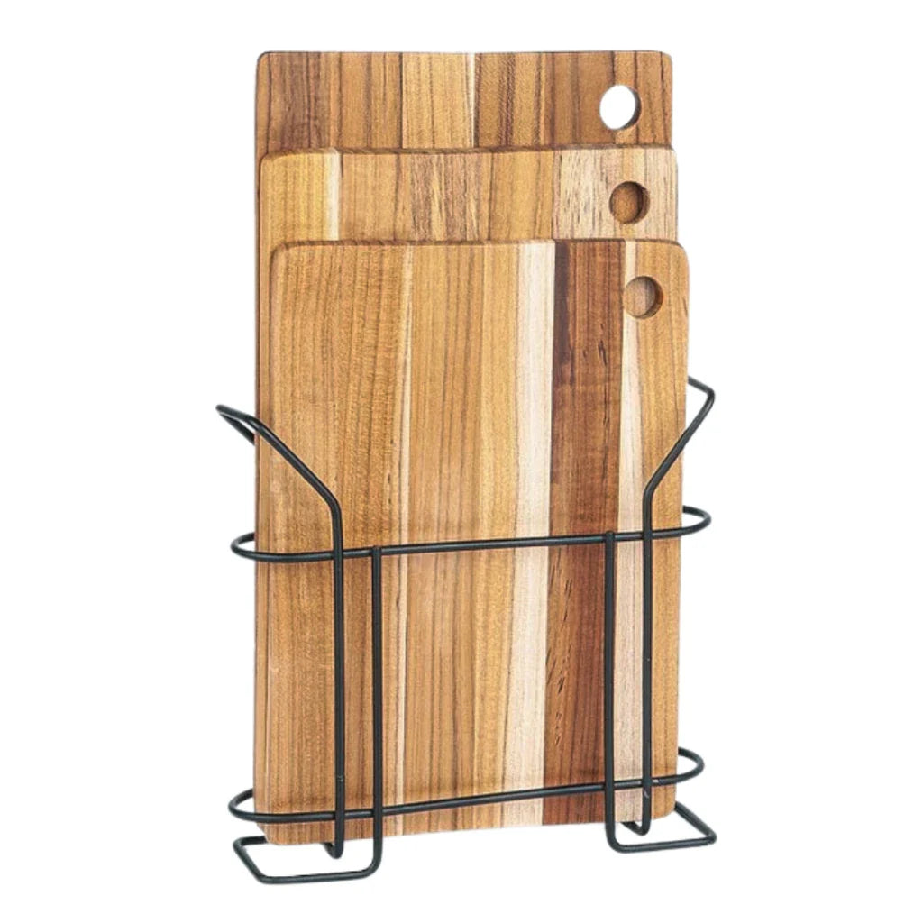 O suporte para as tábuas é um excelente diferencial deste kit. Ele mantém as tábuas organizadas, empilhadas de forma prática e acessível, sem ocupar muito espaço na sua bancada. Com um design moderno e funcional, o suporte é perfeito para manter sua cozinha sempre arrumada e otimizada, deixando as tábuas sempre à mão quando você mais precisar.
