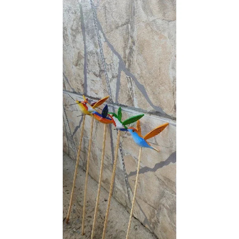 Decore seu jardim com o charme e a delicadeza dos beija-flores! Esse kit artesanal é ideal para trazer um toque natural e colorido ao seu espaço, destacando a beleza das plantas e flores ao redor.