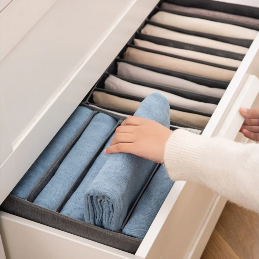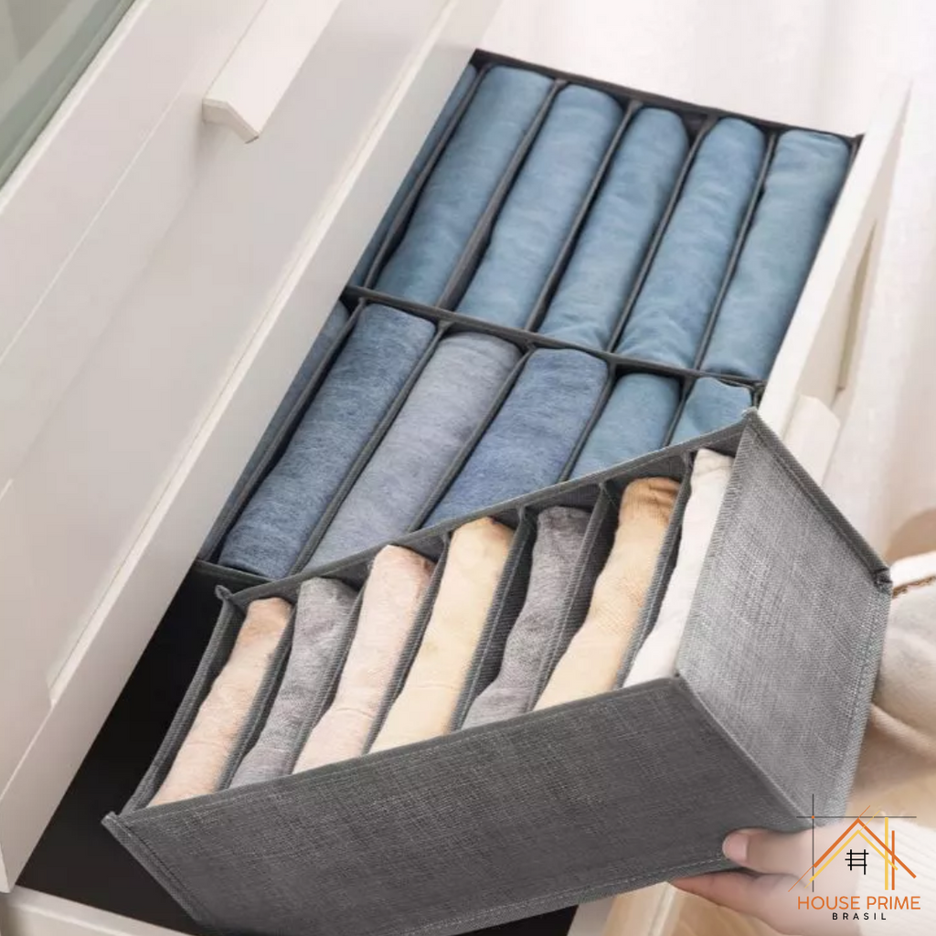 Com 7 compartimentos em cada unidade, o kit é ideal para guardar jeans, camisetas, leggings, roupas íntimas, toalhas de rosto, roupas infantis e muito mais. Além de facilitar a visualização e o acesso aos itens, você encontra o que precisa em segundos – sem bagunça e sem perder tempo.